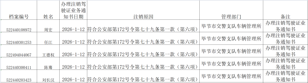 毕节市公安局交通管理支队关于敦促相关人员及时办理驾驶证注销业务的公告
