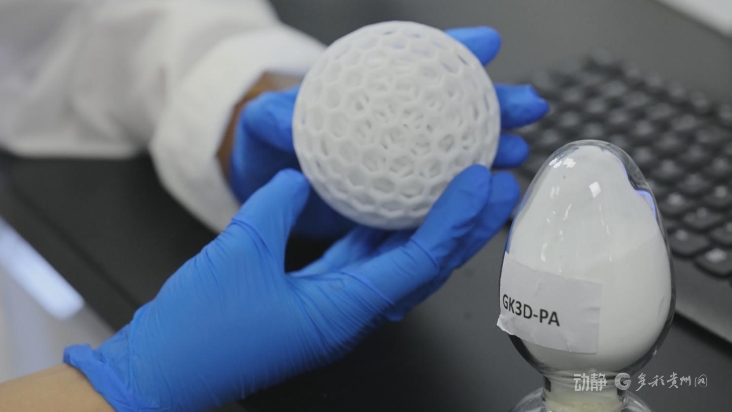 贵州省冶金化工研究所研发工程师金叶说:“我手中这款就是其中的一款聚合物材料,之前我们用的是进口材料,在进行市场化这一块很被动,团队从材料的制备、工艺、改性等方面解决这些问题。所以我们要研发一款属于我们自己的材料,属于中国的材料,我们不断地实验它的配比,得到了3D打印专用材料,已经形成了11项专利技术,成功替换了进口材料。”