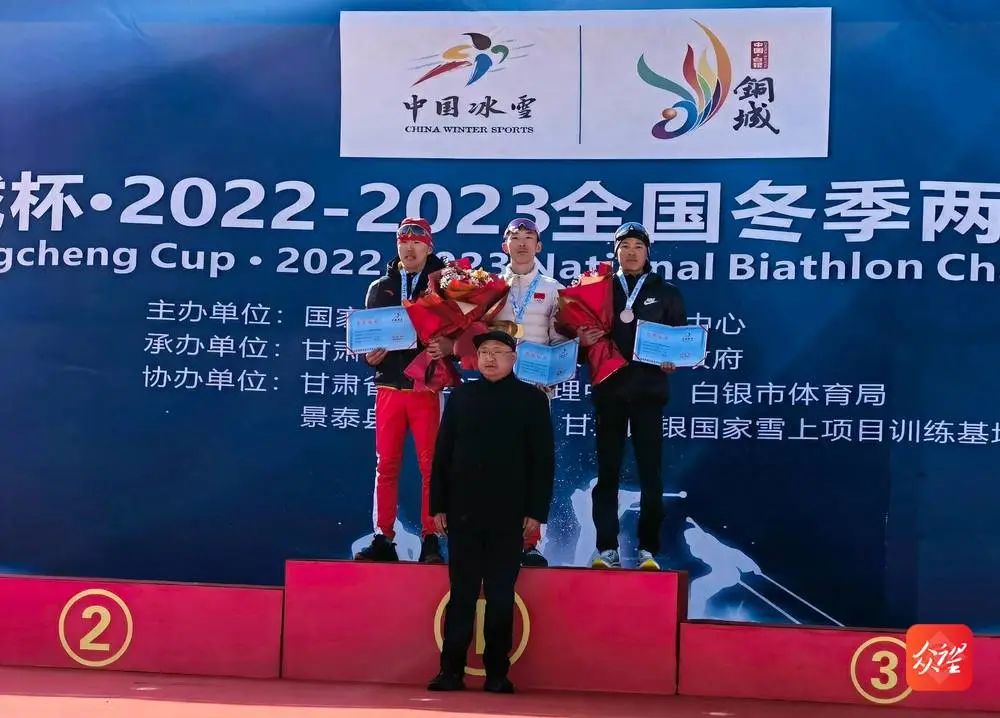 贵州队(左一)获得男子4x7.5公里接力项目银牌