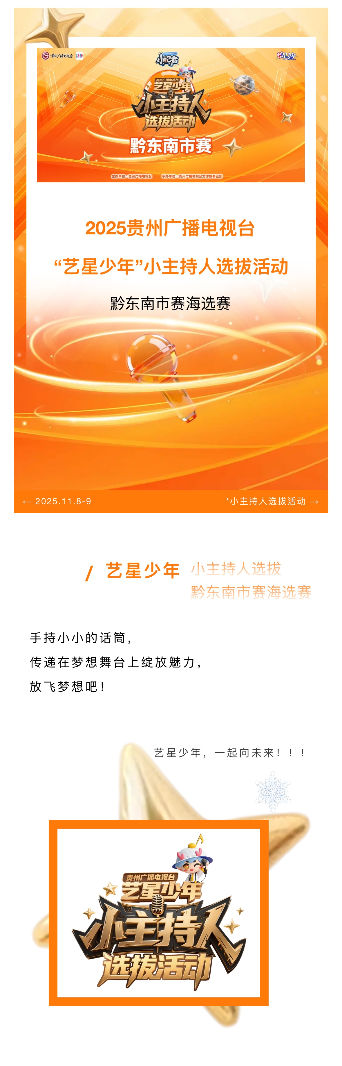 【活动预告】2025贵州广播电视台“艺星少年”小主持人选拔活动——黔东南市赛海选赛即将上线!