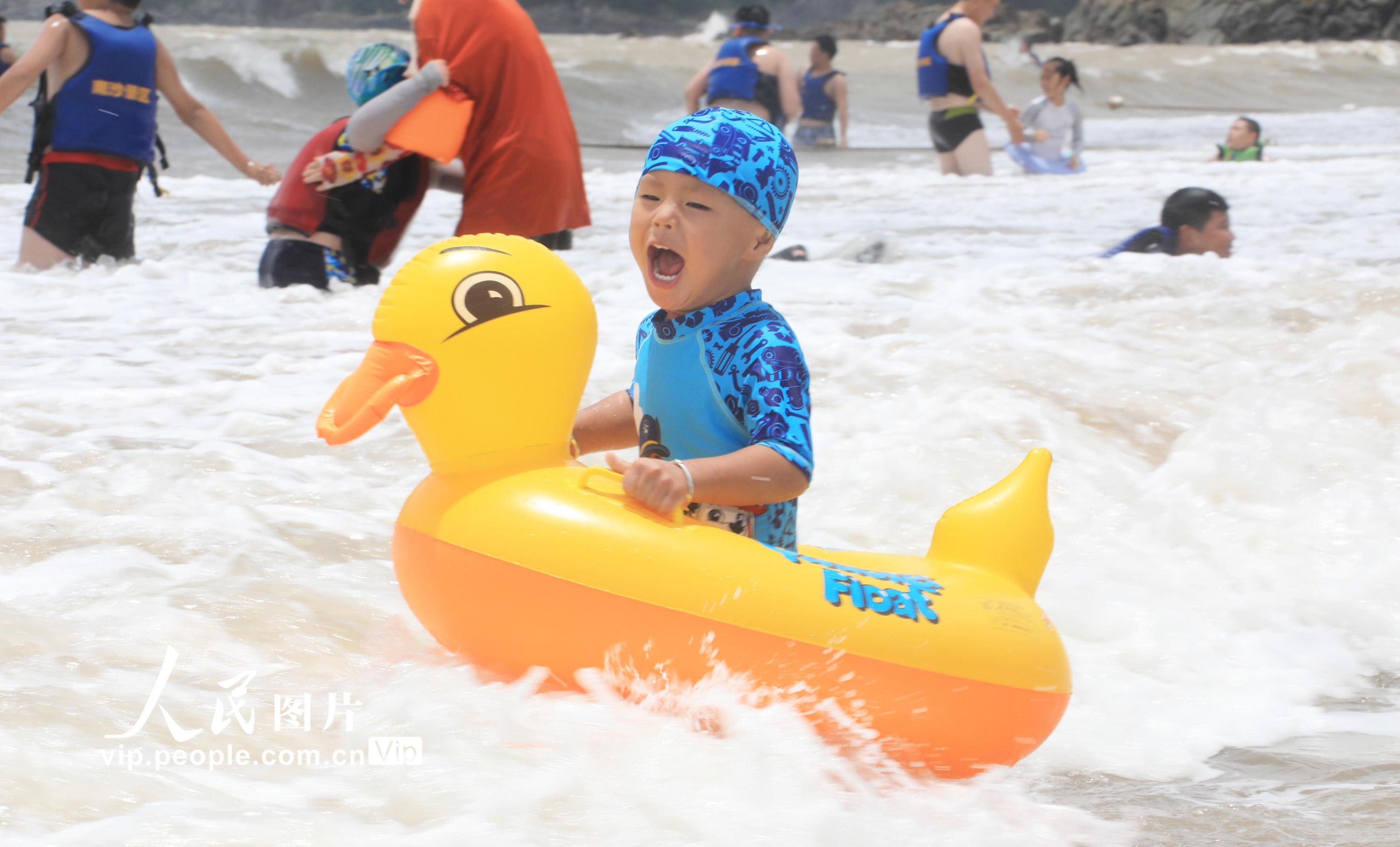 2022年6月28日,浙江舟山市朱家尖南沙景区迎来旅游旺季。天气炎热,各地游客纷纷来到此地避暑纳清凉。陈永建摄(人民图片网)