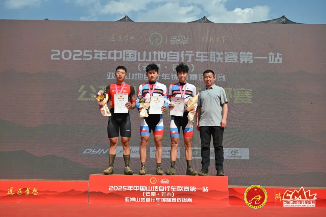 成年男子组山地越野赛,贵州队米久江获得冠军,贵州征途自行车运动俱乐部高永兵获得季军。