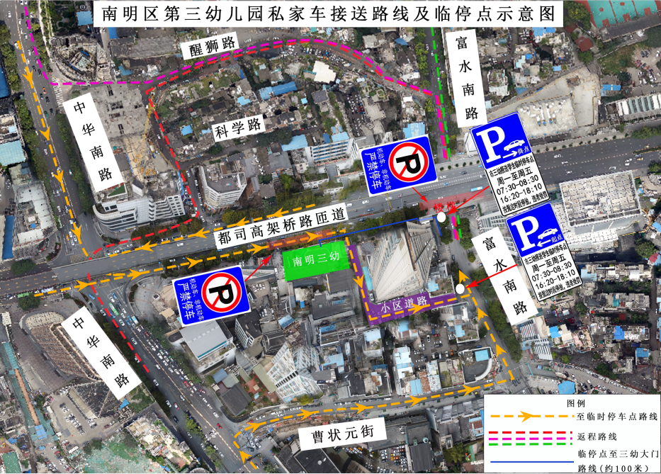 措施一:由都司高架桥前往市三幼接送的车辆,可从都司高架匝道进入富都大厦停车场,由富水南路出,停放于富水南路临时停车点。