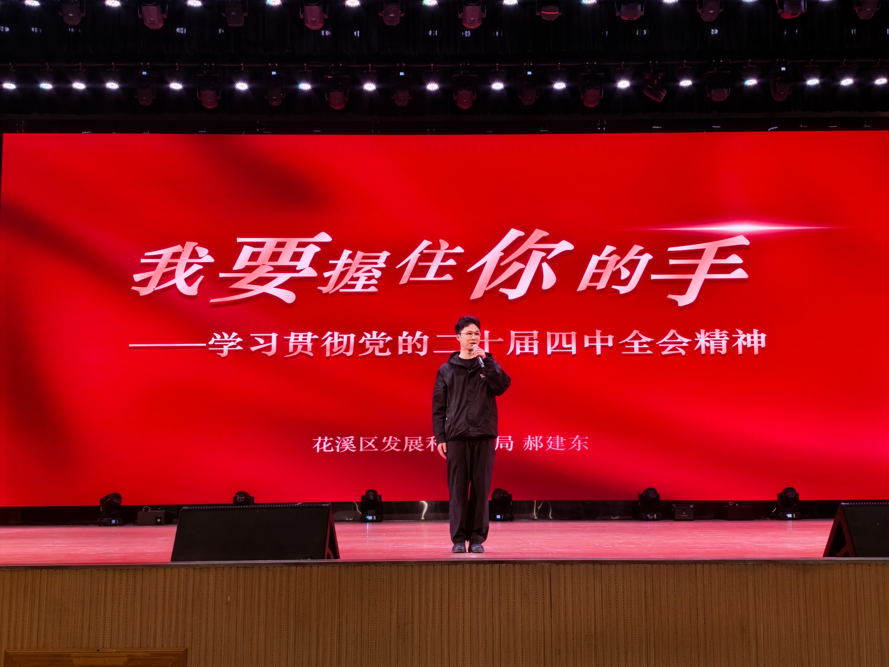 此外,贵阳市花溪区发改局郝建东以《我要握住你的手——学习贯彻党的二十届四中全会精神》,诠释共产党人的初心与使命;贵州航天电子科技有限公司陈斌、王一霖以《小锉刀·大工匠——学习贯彻2026年全国、全省两会精神》,展现航天人的匠心精神;贵阳市观山湖区消防大队朱先进、李锦楷带来《洪流中的平安符——学习贯彻党的二十届四中全会精神,广泛践行社会主义核心价值观》,讲述了消防队员守护人民的感人故事;消防大队沧蓝乐队则以两首歌曲《蓝》《我都在》,用旋律传递了新时代应急救援人员的责任与担当。