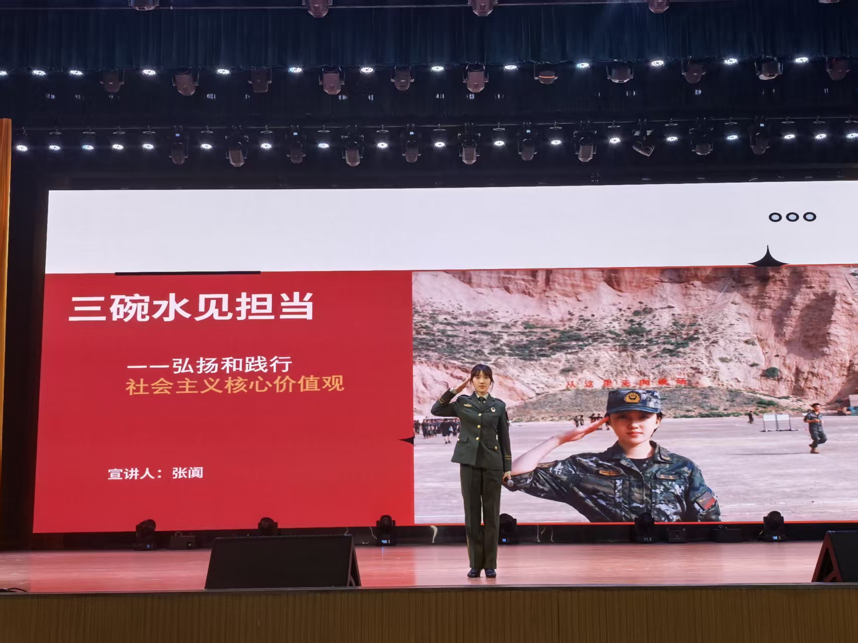 宣讲环节,来自基层一线的宣讲员轮番登场,以“百姓宣讲+文艺宣讲”、单人宣讲与“理论宣传二人讲”相结合的形式,为现场师生呈现了一场接地气、有温度、入人心的思想盛宴。