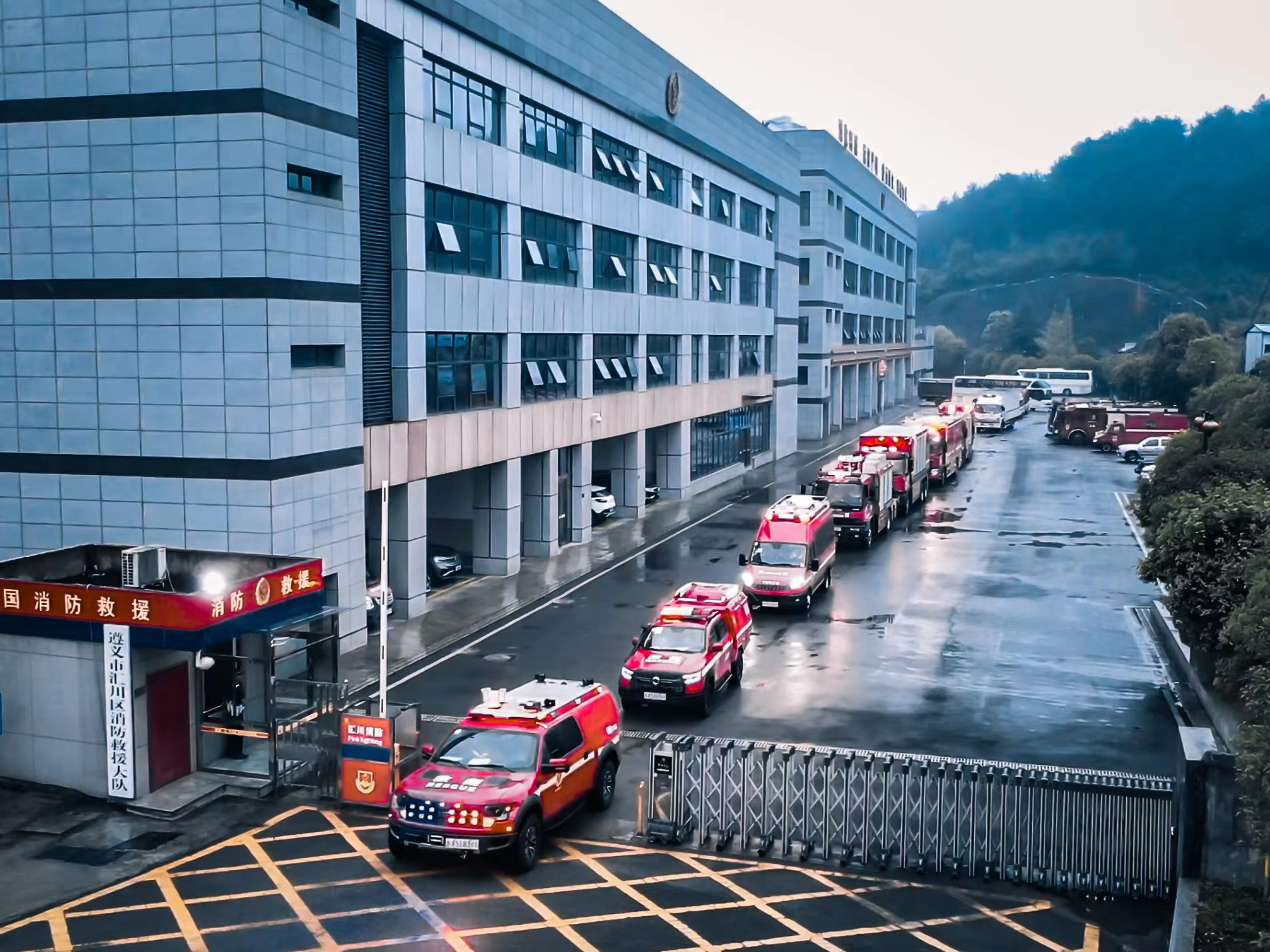 遵义市消防救援支队接到省消防救援总队命令后,立即启动跨区域增援预案,集结通信指挥、抢险救援、器材物资运输、饮食宿营保障等类别消防车共20辆,集结人员80人,其中通过高铁投送14人,公路投送66人。