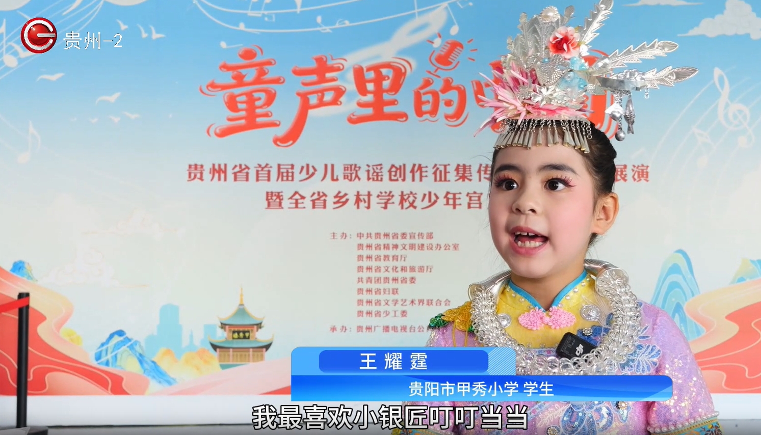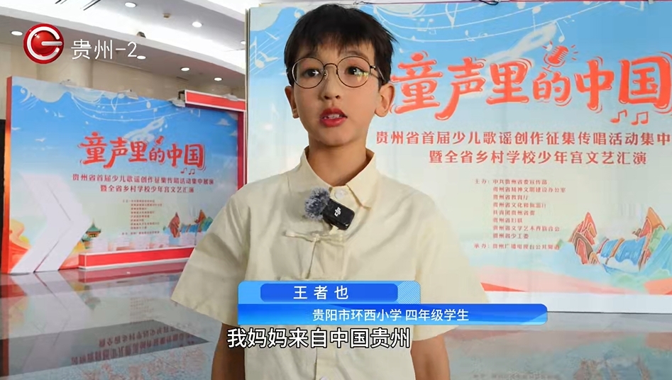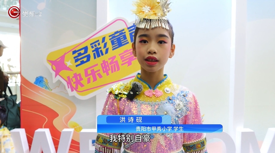 贵阳市甲秀小学学生洪诗砚:作为一个贵州小朋友,我特别自豪,因为我们可以把各种民族的歌曲唱给全世界的小朋友们听。