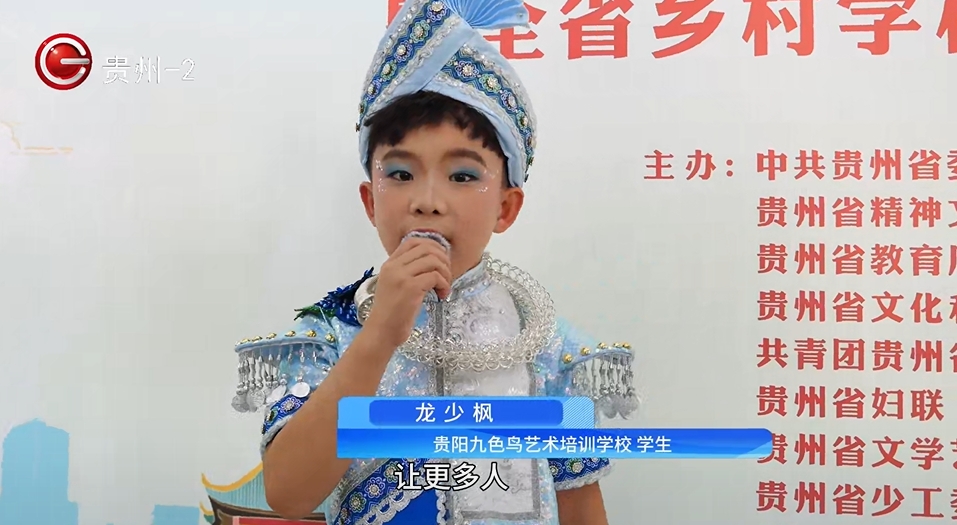 贵阳九色鸟艺术培训学校学生龙少枫:希望通过我们的歌声,让更多人喜欢上贵州的少数民族文化,欢迎大家来贵州玩。