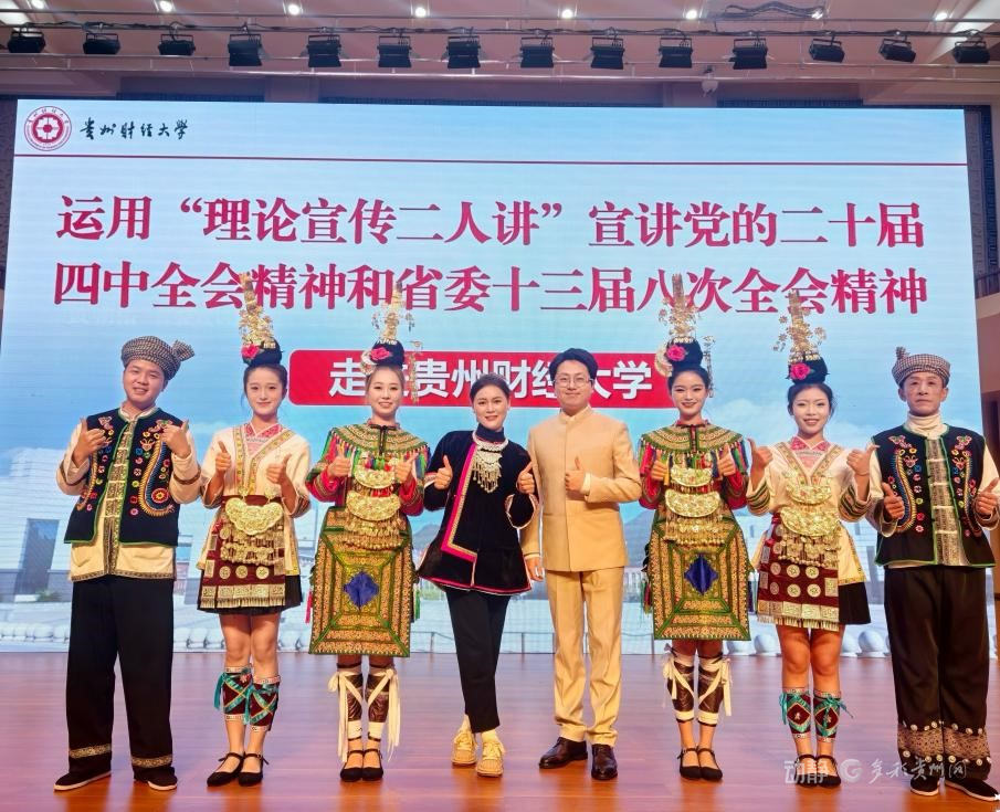 贵州民族大学礼堂内,一场别开生面的“理论宣传二人讲”正在进行。
