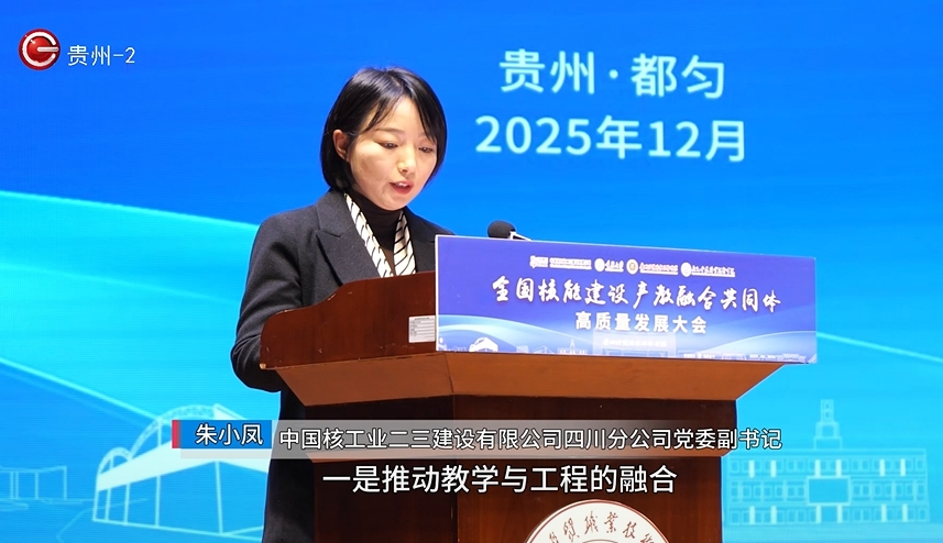 中国核工业二三建设有限公司四川分公司党委副书记朱小凤:我们将深化合作,一是推动教学与工程的融合,将我们60余年积累的技术标准、工艺工法和项目案例转化为可教学、可传承的课程资源,让工程现场走进课堂,实现课堂与现场的深度衔接。二是推进技术与需求的对接,围绕智能建造数字化施工等前沿方向,以真实工程需求为导向,联合攻关,推动创新成果切实落地。