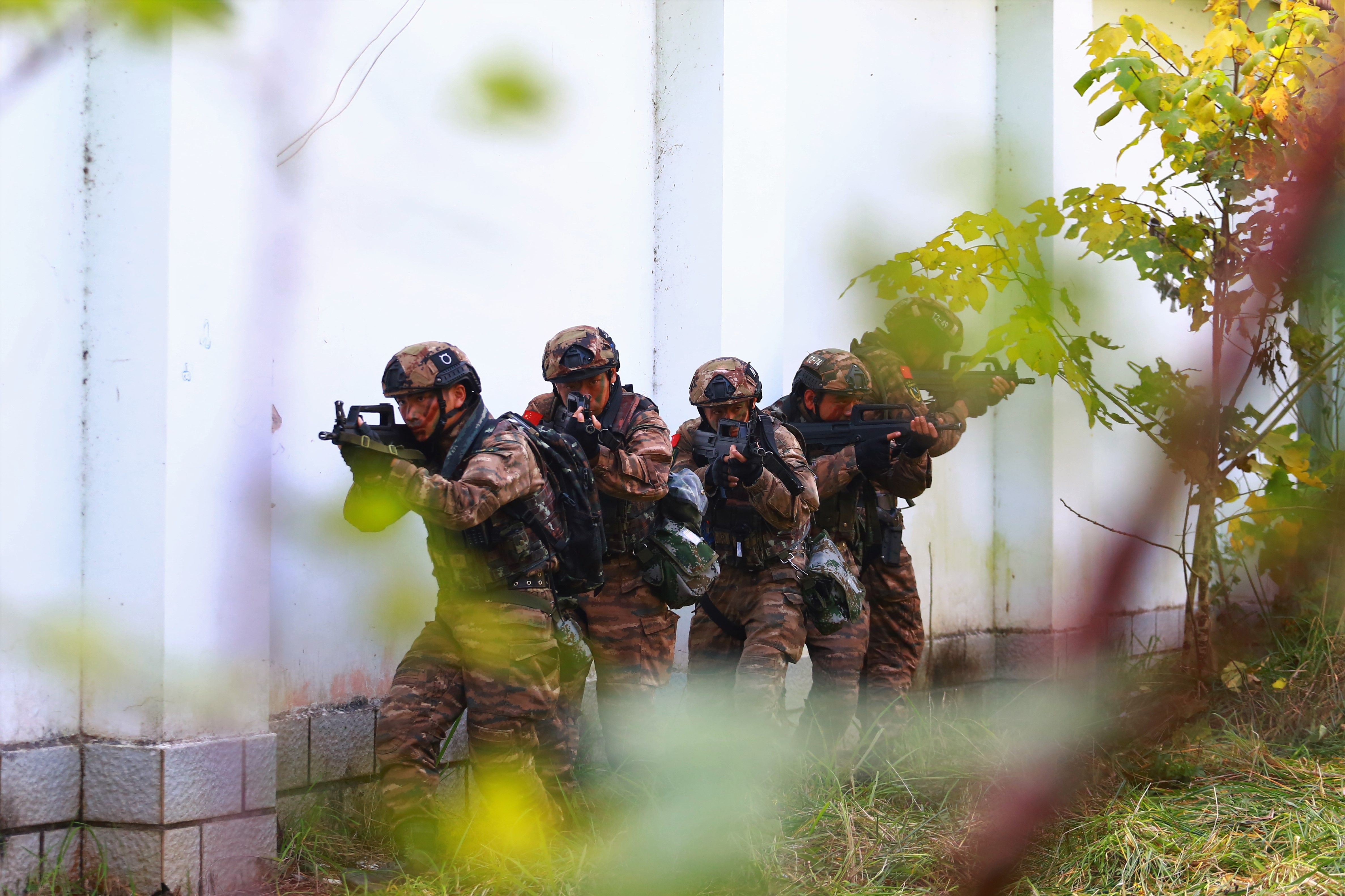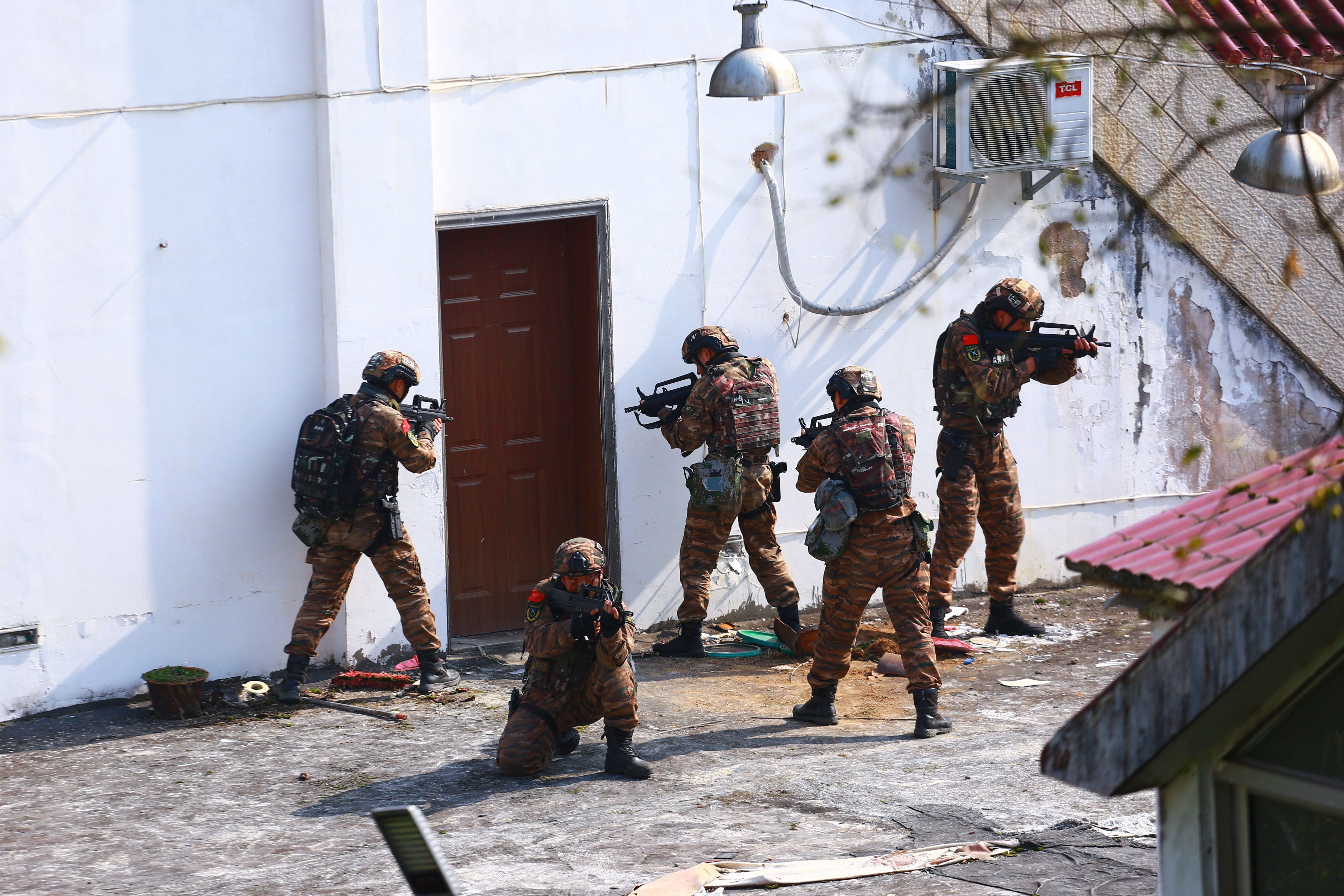而就在此时,对讲机里又传来新的任务,“当前的情况是,在楼房反劫持演练中,两名暴恐分子被击毙,另一名暴恐分子趁乱打伤我方一名队员,并抢夺手枪逃窜至茂密树林中,卫生员立即对伤员实施救治,其余人员迅速展开追捕……”