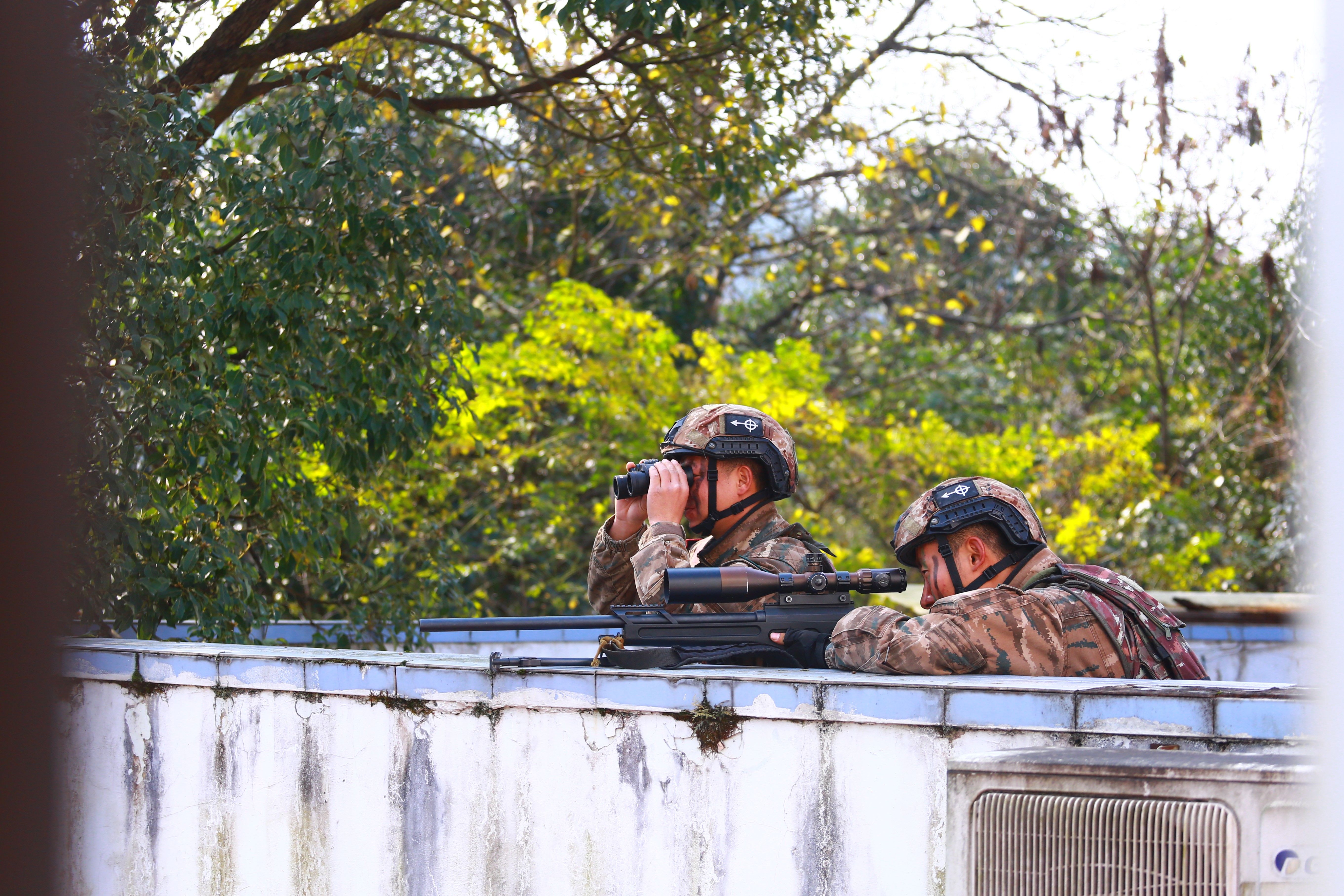 抵达目标区域后,中队长徐明立即对形势进行研判,并明确了任务要求,“狙击组迅速占领制高点,观察暴恐分子动向;侦察组利用地物地貌特点,进行隐蔽和抵进侦察;突击组潜伏至有利突击位置,随时待命;政治攻心组上前谈判,实施政治攻心。”各小组按照任务划分迅速展开行动。