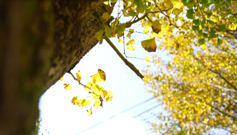 走进丹霞镇铁厂村九坎一片比较平坦的土地,里面种植了参天的香樟树,山茶花树等,林径通幽,最为漂亮的却是数百株银杏树,它们虽然是人工种植打造,但因树冠大,造型独特而独具一格。