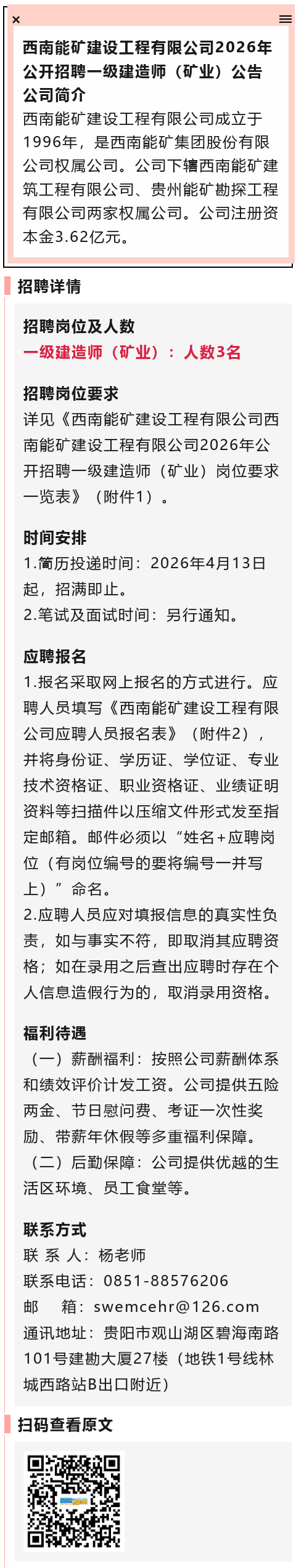 五险两金、带薪年假!西南能矿建设工程有限公司招聘!