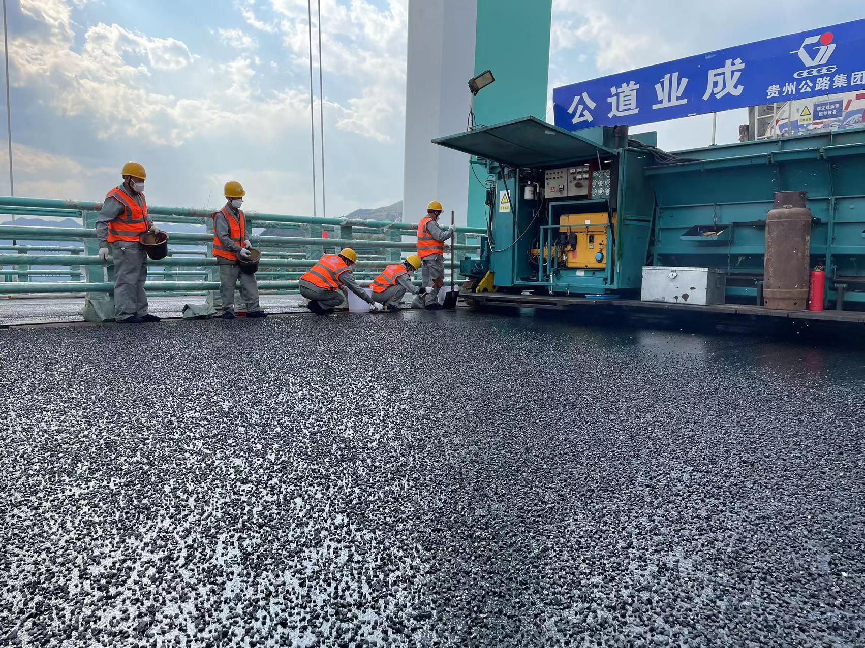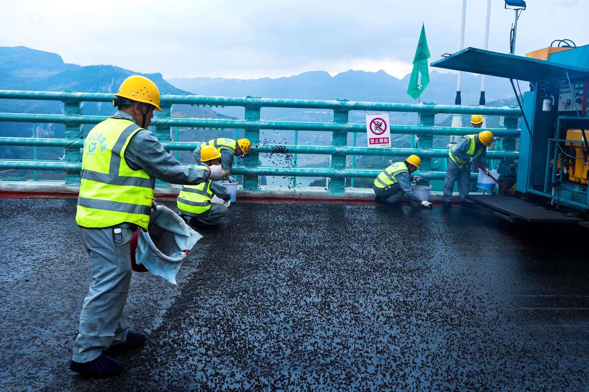 贵州升级港珠澳大桥铺装技术,金烽乌江特大桥钢桥面铺装正在进行