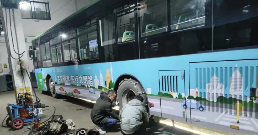 维修战线的“铁军”与“巧手”在贵阳公交汽车修理分公司,一场与时间赛跑的“防滑链安装战”在寒夜里打响:党员率先垂范,带领工友们扛起沉重的防滑链,走向待命车辆。冷冽寒风如刀,他们的双手冻得通红,却动作麻利、一丝不苟。蹲身、套链、拉紧、卡扣、加固……金属碰撞声与工友间的吆喝声,成了冬夜里最动人的“交响曲”。正是这些汽修工人,用粗糙而有力的双手,在金属与油污交织的冬夜里,为城市公交编织起一张坚实的安全防护网。