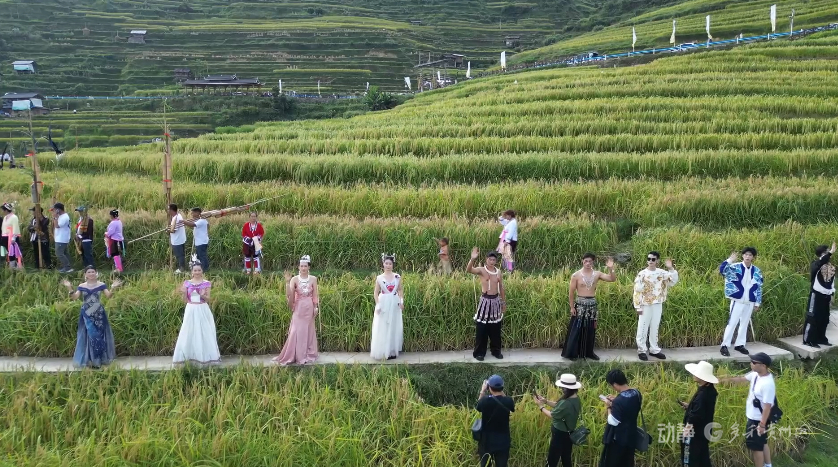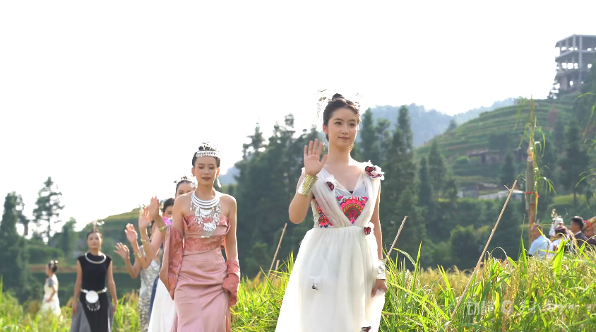 此次活动以梯田为天然T台,将民族非遗与现代时尚相融合,模特身着少数民族刺绣与蜡染元素设计的服饰行走于稻浪间,呈现出农耕文明与当代艺术共创的沉浸式场景。