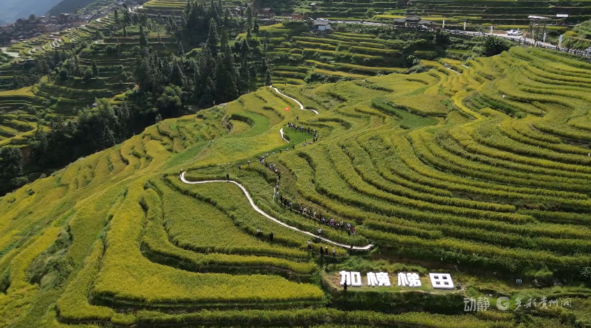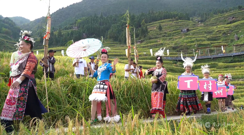 近日,“金秋加榜梯田——中国式丰收主题村T秀”在黔东南苗族侗族自治州从江县加榜梯田举行,艺术化展演传递丰收喜悦。