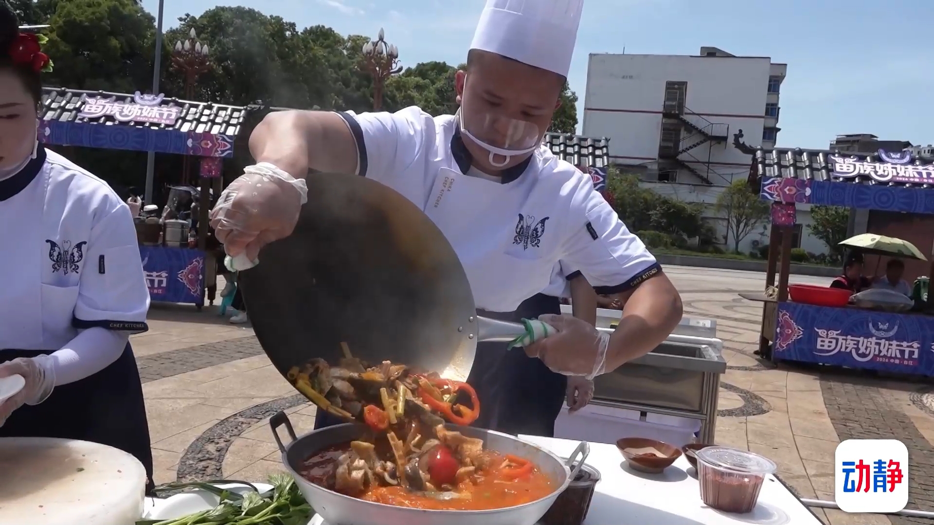 活动现场烟火升腾、人气爆棚,参赛选手煎炒烹炸、精心雕琢,每一道菜品都兼具颜值与风味,呈现出苗家美食的无限创意。