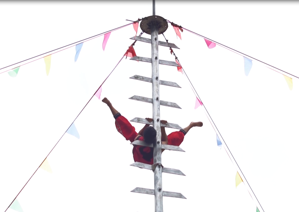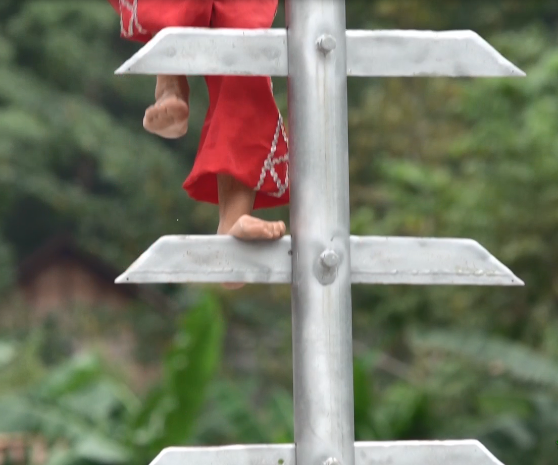 赤脚踩在锋利的刀片做成的刀梯上,在高处再做出各种高难度动作,这就是当地著名的“上刀山”表演。
