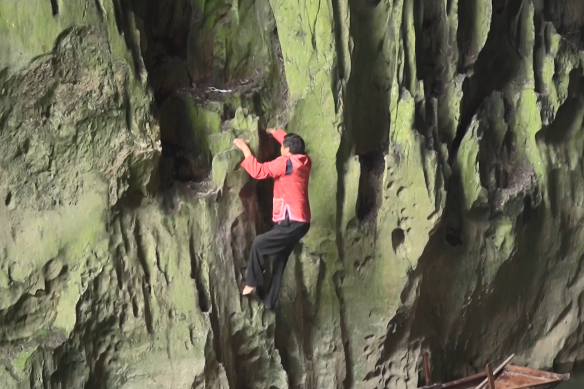 如果看了“上刀山”已经让你心惊胆战,来到“燕子洞”还有更刺激的,那就是徒手攀岩,这些在悬崖峭壁上来回自如不需要任何保护措施的当地苗族民众被称为“蜘蛛人”。