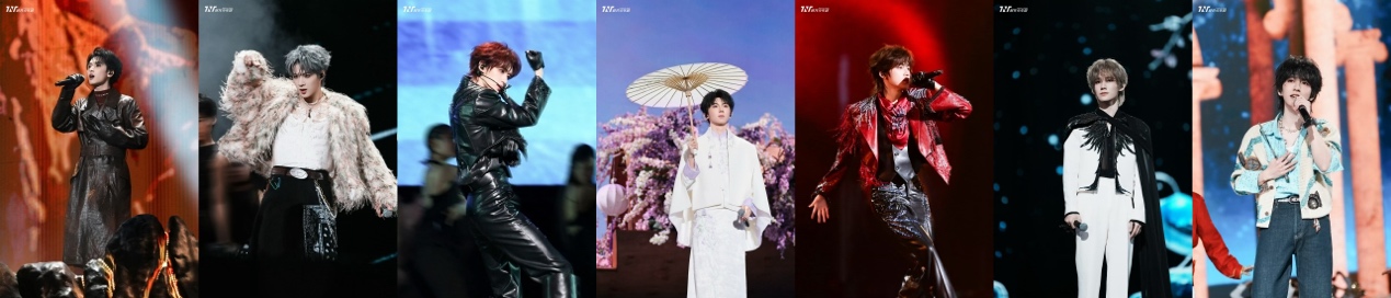 七位少年的个人舞台同样亮点频出。马嘉祺一袭白衣撑伞演绎《苏州河》,被赞“水墨画中走出的贵公子”;丁程鑫一头红发致敬经典,《拒绝再玩》唱跳充满野性张力;宋亚轩身穿红衣献唱《羊皮先生》,魅惑转音惊艳四座;刘耀文新歌《SAUCE》舞台首秀,劲爆舞台引爆尖叫;张真源深情翻唱《用情》,情感饱满直击人心;严浩翔身着长款皮革风衣带来《动摇》,气场全开展现舞台掌控力;贺峻霖卷毛造型甜唱《爱你》,灵动可爱获封“童话小兔”。