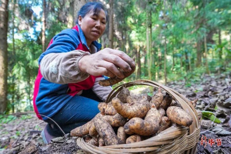 2023年11月27日,天气晴好,走进大方县慕俄格古城街道红星村的贵州九龙天麻有限公司种植基地,只见苍翠山林里若隐若现的身影穿梭其中,工人们正抢抓时令采收天麻,采挖、分拣、装袋……现场一片忙碌。