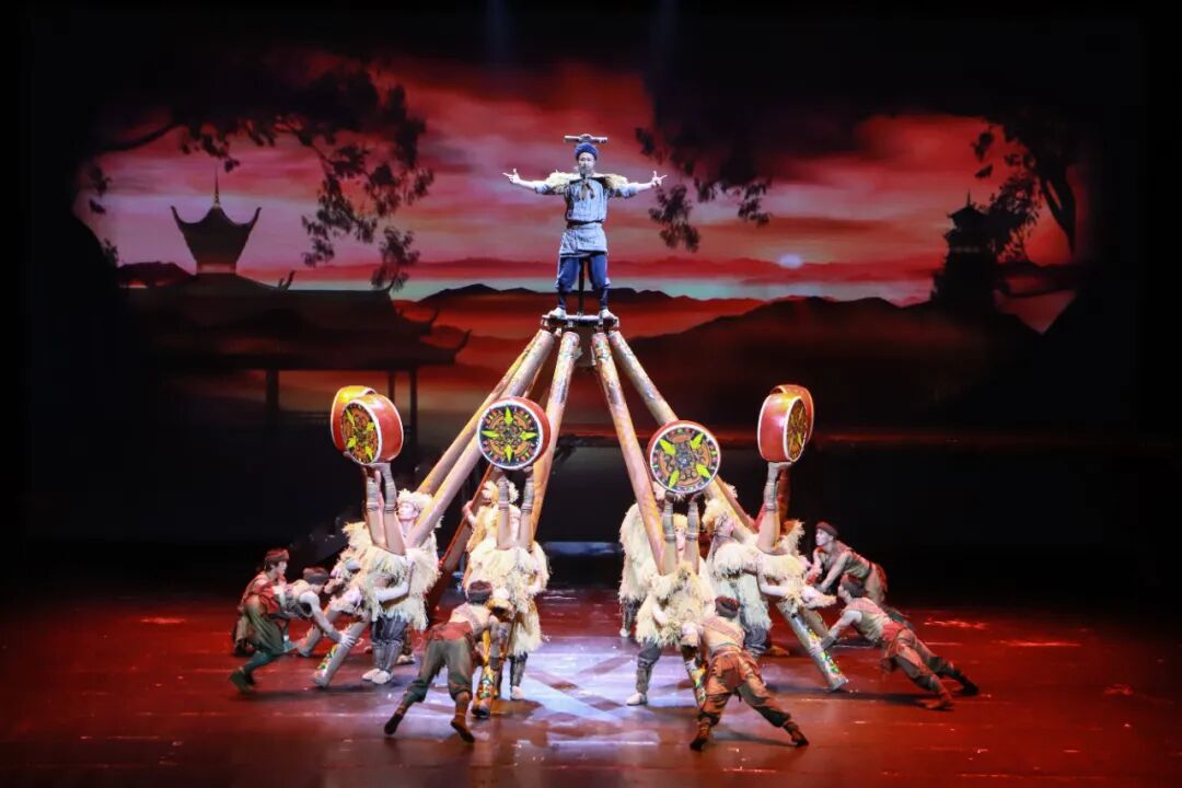 全剧共分为七幕,生动讲述了西部少数民族乡亲们在党的领导下开山修路、决战脱贫攻坚战的壮阔历程。舞台上,“空翻”“蹬鼓”“顶人”“弹球”等高难度杂技绝活轮番上演,演员们精准利落的动作令观众目不暇接,手心冒汗;同时,剧目还巧妙融入了苗族银饰、侗族舞蹈、土家风俗等贵州独特的民族文化元素,让杂技艺术与地域特色相得益彰,绽放出独特的文化魅力。