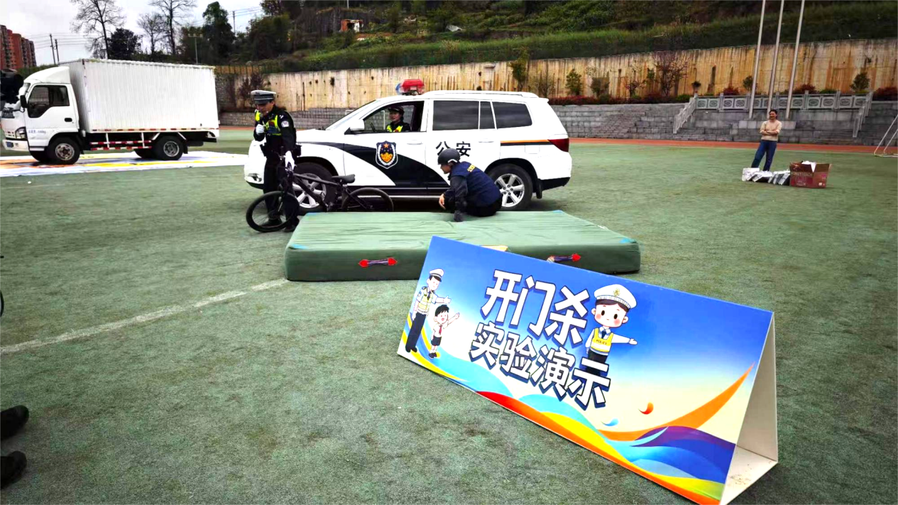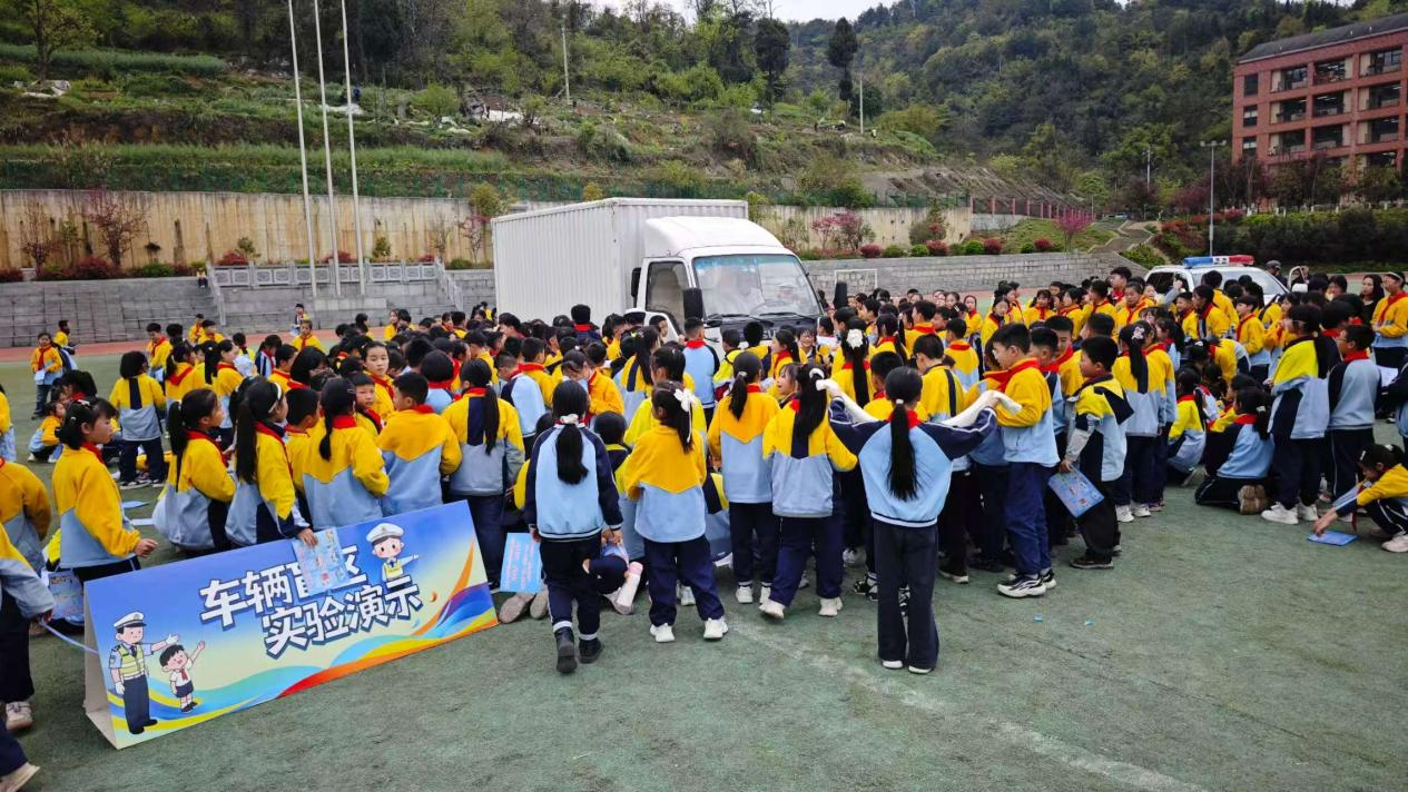 活动最后,交警老师带来车辆盲区安全现场演示,直观展示车辆视野盲区的危险区域,让同学们清晰了解在车辆周边玩耍、穿行的安全隐患,教导大家远离车辆盲区,规范出行,切实提升道路安全自我防护能力。