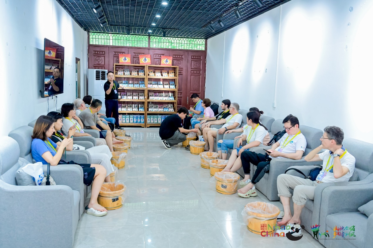 瑶山古寨之行的最后,欧洲国家旅行商们前往体验瑶浴。瑶浴是瑶山古寨的一大特色,独特的瑶族瑶医药配方具有多重功效,欧洲国家旅行商们在泡瑶浴的过程中缓解旅途疲劳,尽情放松。