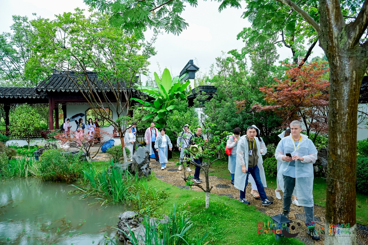 即便是下雨天,也没有减少欧洲国家旅行商们的考察热情。乘坐观光车环游在贵州绿博园内,欧洲国家旅行商频频被其别致的中式园林景观吸引,不断赞叹园内建筑的古韵之美,沉浸式感受中式传统建筑的独特魅力。