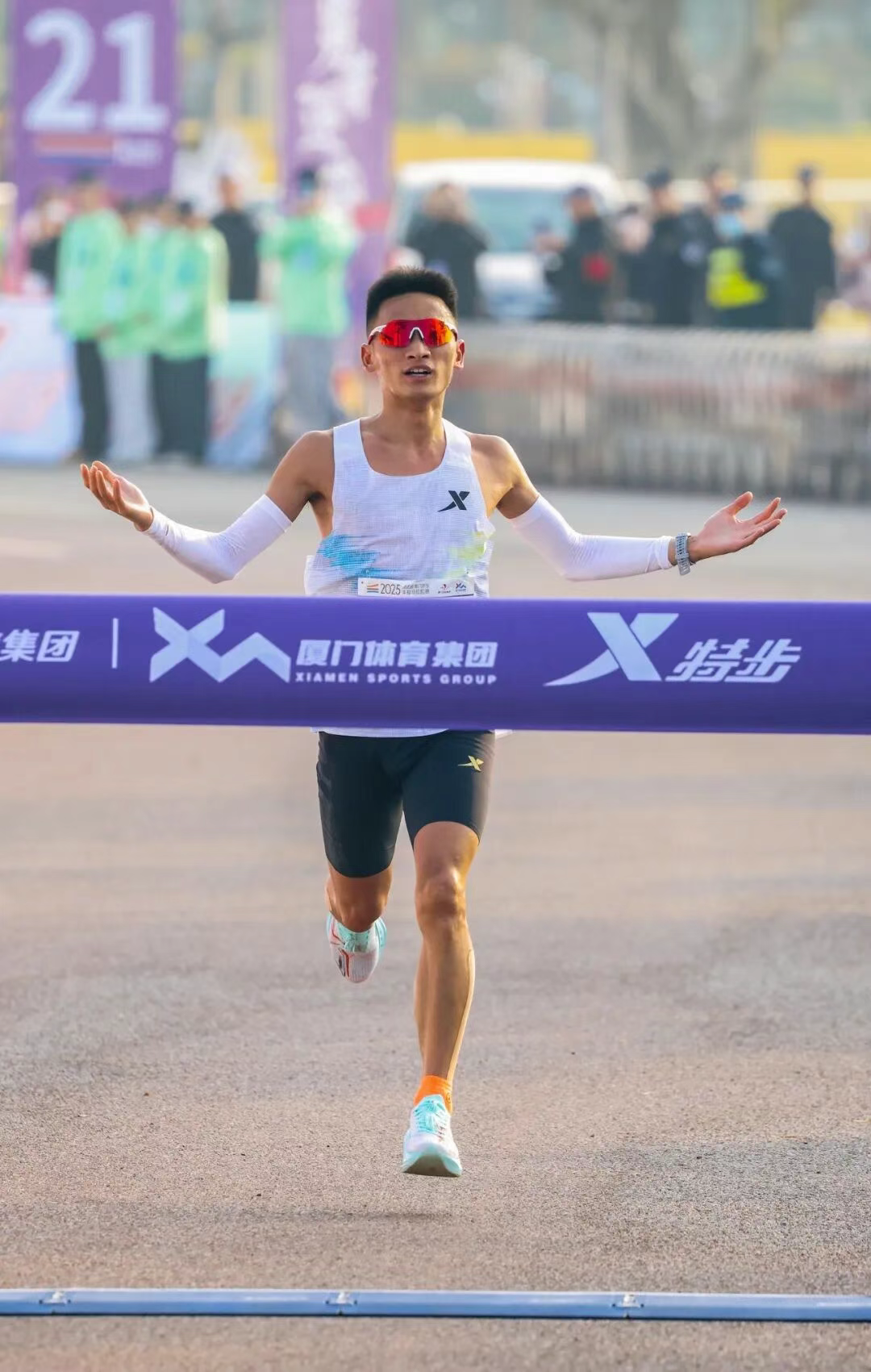 12月21日,2025厦门环东半程马拉松鸣枪,贵州健儿丰配友以01:03:47夺得男子组冠军。