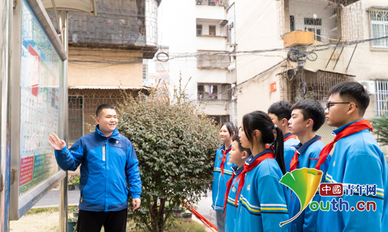 雷铭宇为少先队员们讲述垃圾分类知识。湖北工业大学研支团供图