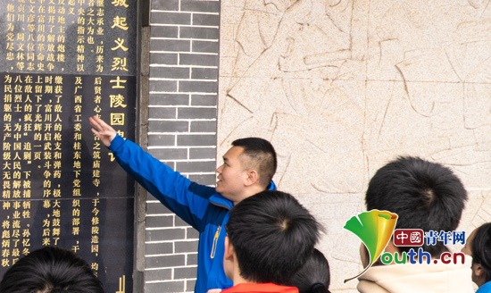 研支团“青骑兵”宣讲员雷铭宇讲述古城起义历史概况。湖北工业大学研支团供图