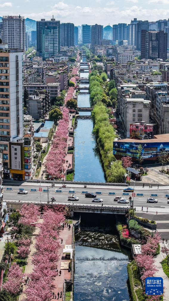近日,贵州省六盘水市钟山区水城河畔樱花长廊春意正浓,花香四溢,吸引众多市民游客前来踏青观赏。近年来,当地依托城区河畔樱花长廊,延伸“赏花+”产业链,将自然景观转化为经济效益。文旅消费联动视听、商超、餐饮等领域,成为激活市场消费潜力新的经济增长点。新华社记者 陶亮 摄
