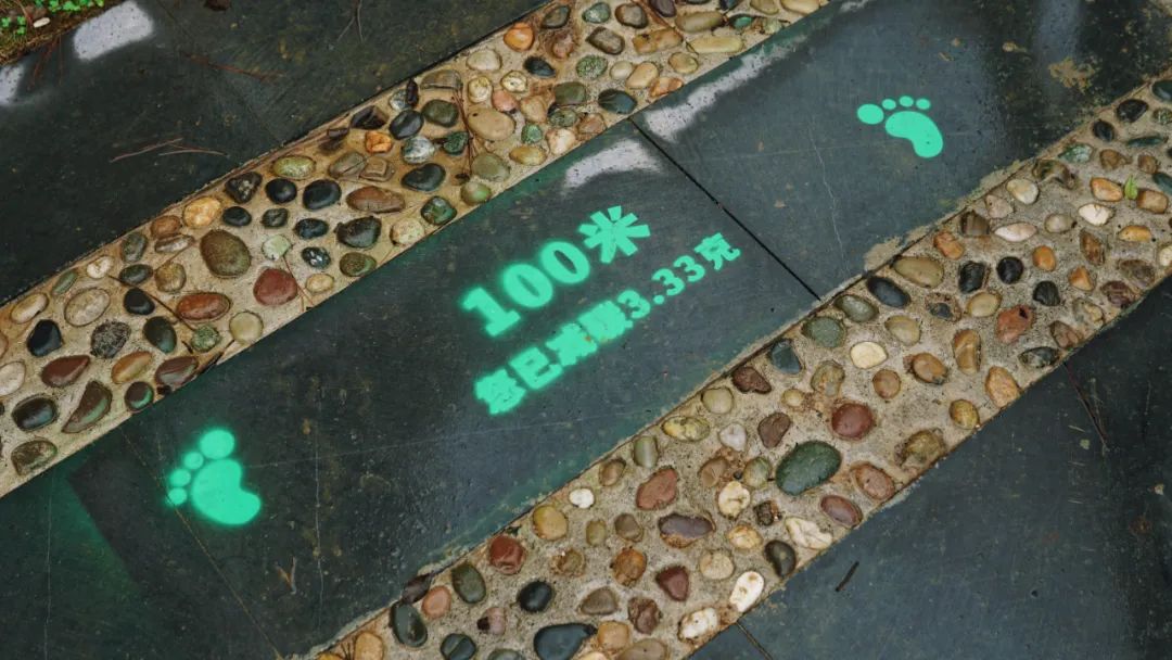 踏入公园内的「低碳生活区」,低头便能看见一条亮眼鲜艳的低碳步道,行人的每一步减碳行动都能以可视化的方式呈现。