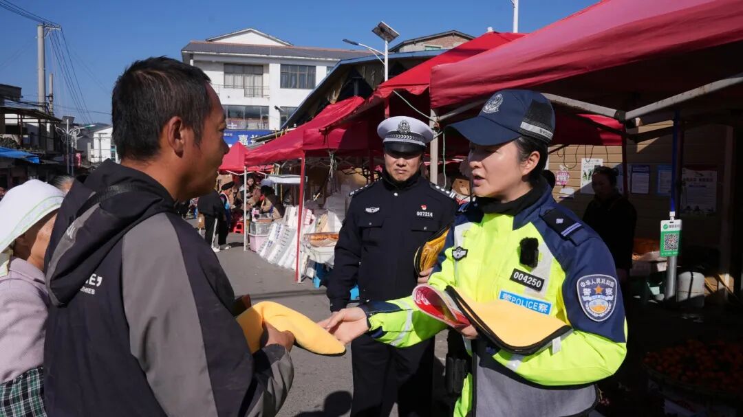 针对集市上的摊贩群体,民警也逐一送上厨房三件套,结合他们日常出行特点,叮嘱大家遵守交通规则,平安经营、安全出行。