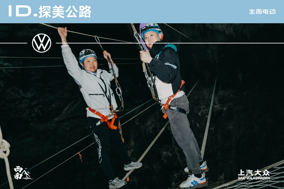 从钢筋水泥到山野秘境,从灯火霓虹到神秘丛林,当绿野与蓝天交相辉映,车主们更换装备、装上绳索,在洞穴中亮起一盏盏手电,探索神秘未知的地心深处。车主们进行着SRT绳索体验,这是属于勇敢者的游戏,在天地之间自然塑成的洞穴中进行百米溜索,化成一只飞鸟穿梭于丛林之中,心怀敬畏,来到地心世界。国内首家悬崖咖啡馆,在200米的崖壁上品味一杯心跳的咖啡,跟五湖四海的ID.车友相遇山野秘境。
