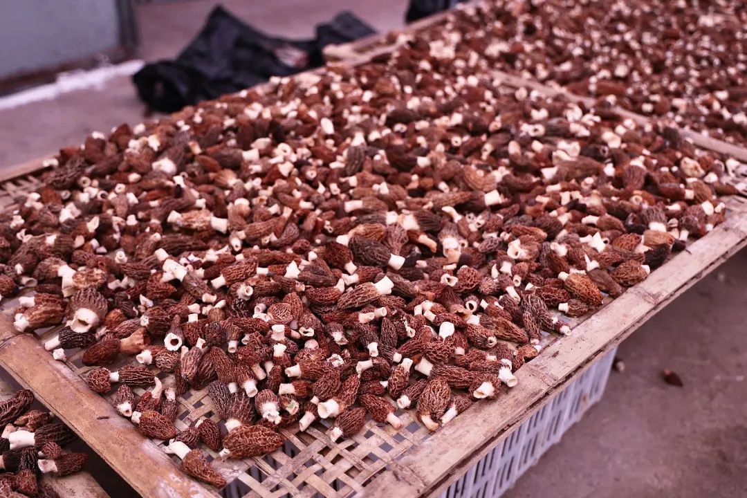 采摘后,根据大小、形状、色泽等标准进行分类。个头饱满、形状规整、颜色鲜亮的羊肚菌将作为精品,直接供应给高端市场。有的则经烘干处理后成为干货,在不同季节满足消费者的需求,实现错峰销售。
