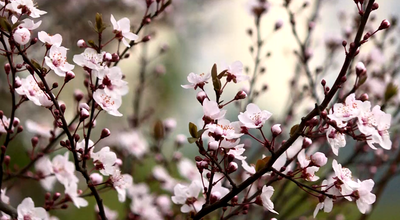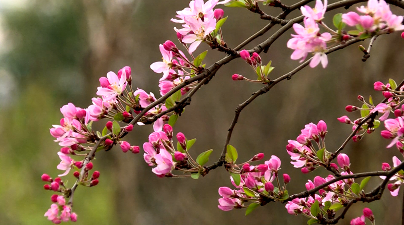 看,鲜花缀满枝头;听,除叽叽喳喳的小鸟的叫声外,还可感受到微风从耳边吹过的声音。嗅,花的芬芳扑鼻而来。漫步林间,有一种被鲜花包围的惬意。这,就是春天该有的样子。