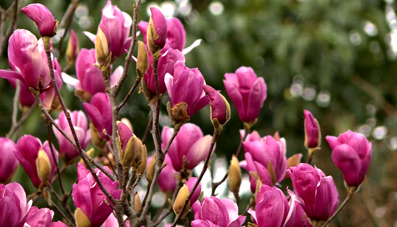 春风吹拂,百花盛开。这几天,盘州市盘江股份广场前的玉兰花,海棠花等花儿竞相绽放。红色、粉白色,紫色,或红白相间,多姿多彩。