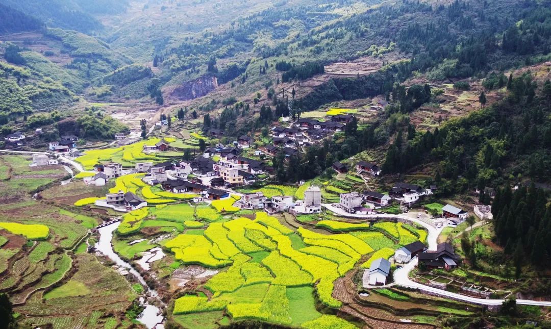 油菜花盛开时节,金黄色的油菜花漫山遍野,花香阵阵、绚烂夺目。