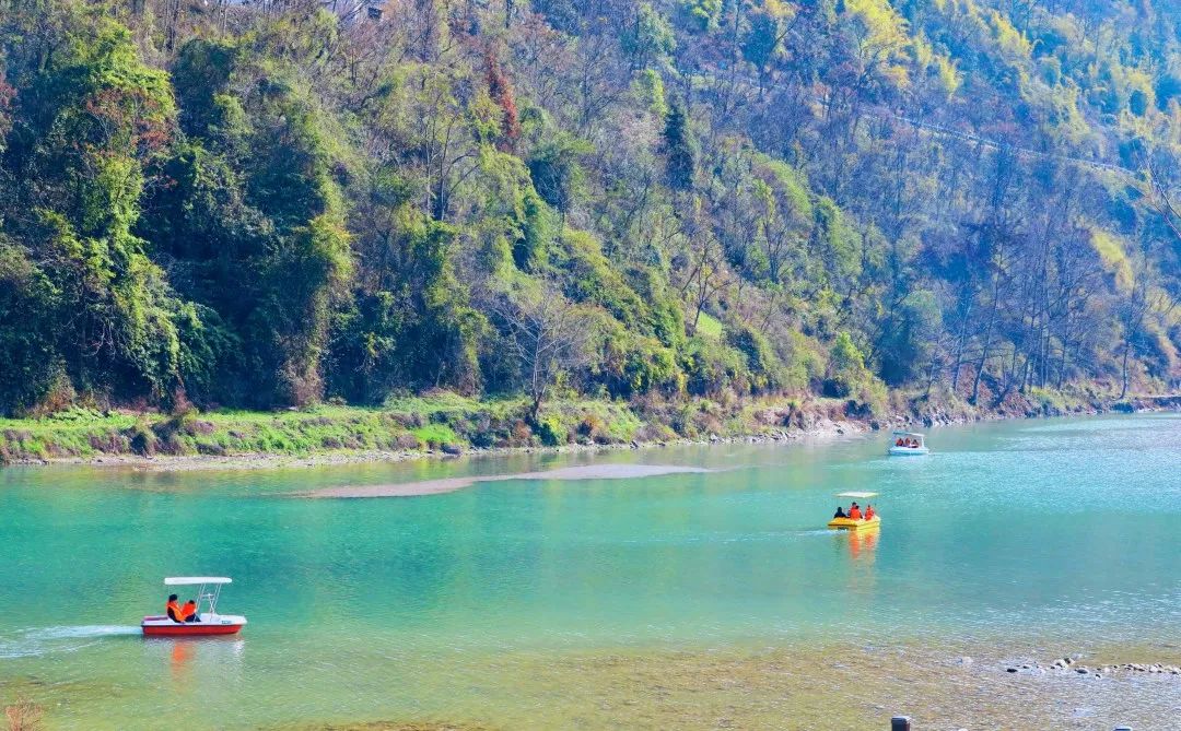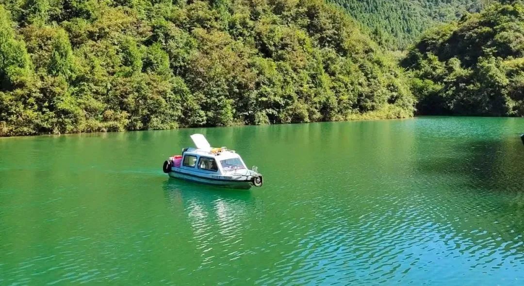 在地落湖坐上快艇,仿佛“舟行碧波上,人在画中游”。