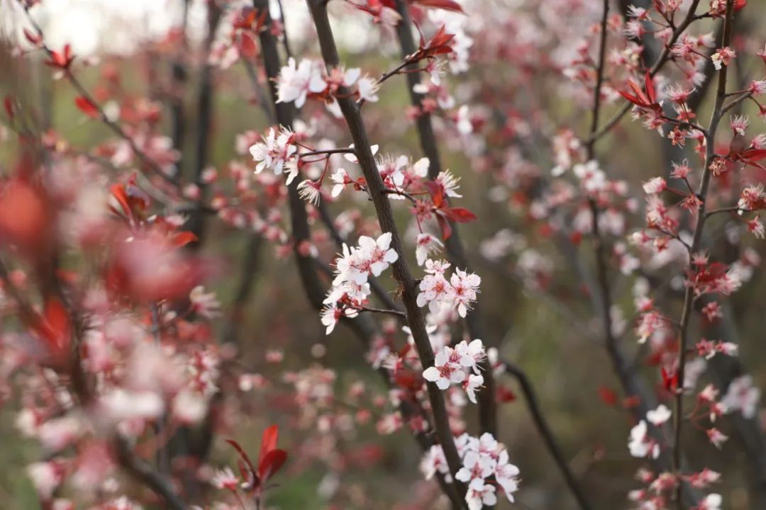 众多的紫叶李开得正艳