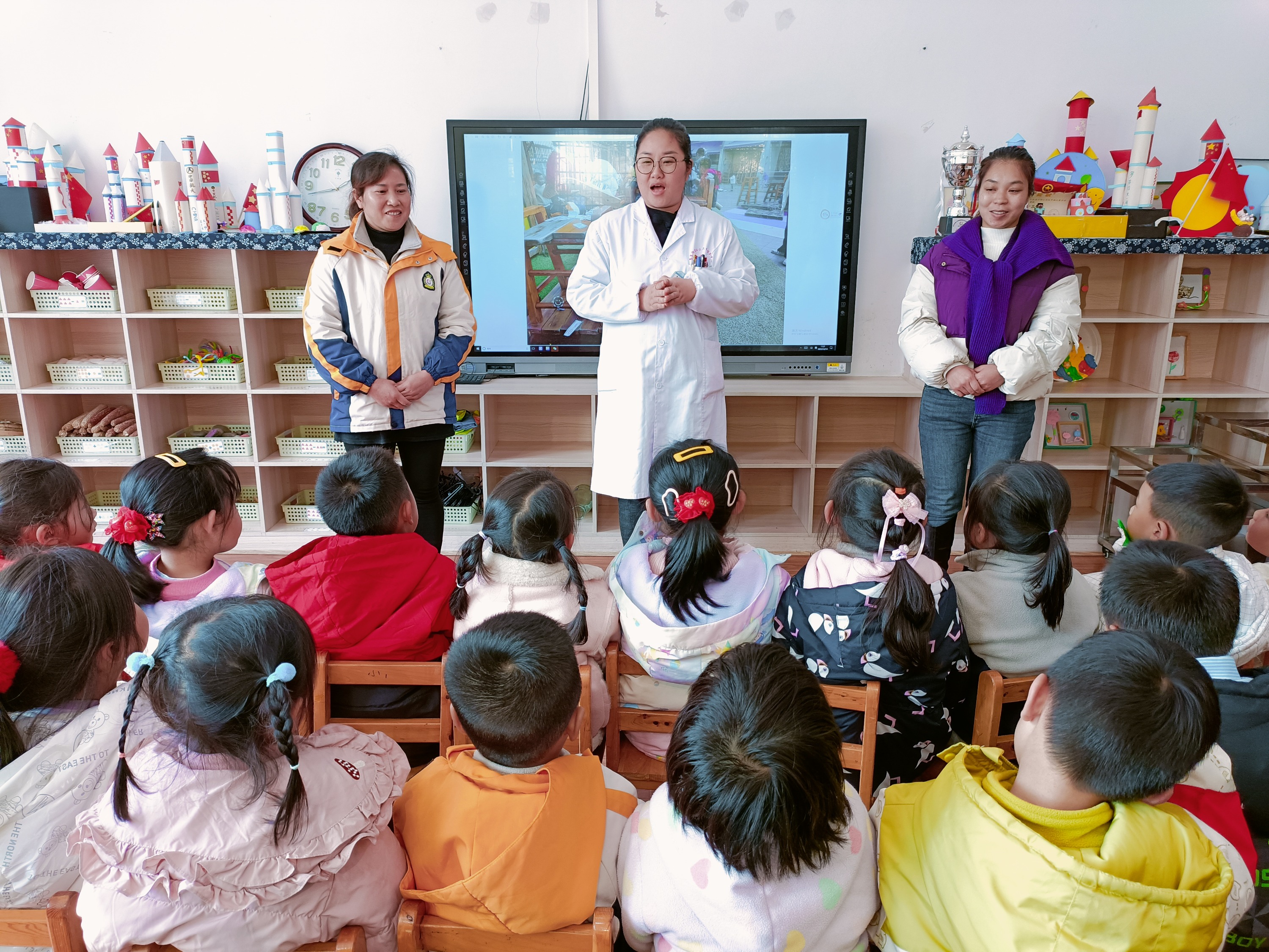 “打喷嚏要用纸遮挡,要勤洗手,平时多吃绿叶蔬菜,晚上早点睡觉......”围绕如何预防呼吸道疾病,蓼皋街道社区卫生服务中心组织医生来到幼儿园,为学生和老师普及健康知识,宣传流感疫苗。
