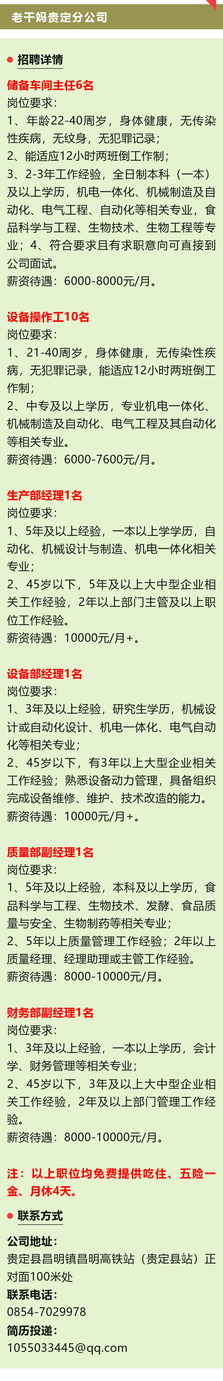 【知名企业】老干妈招聘!月薪6000~10000元+!免费提供吃住、五险一金!