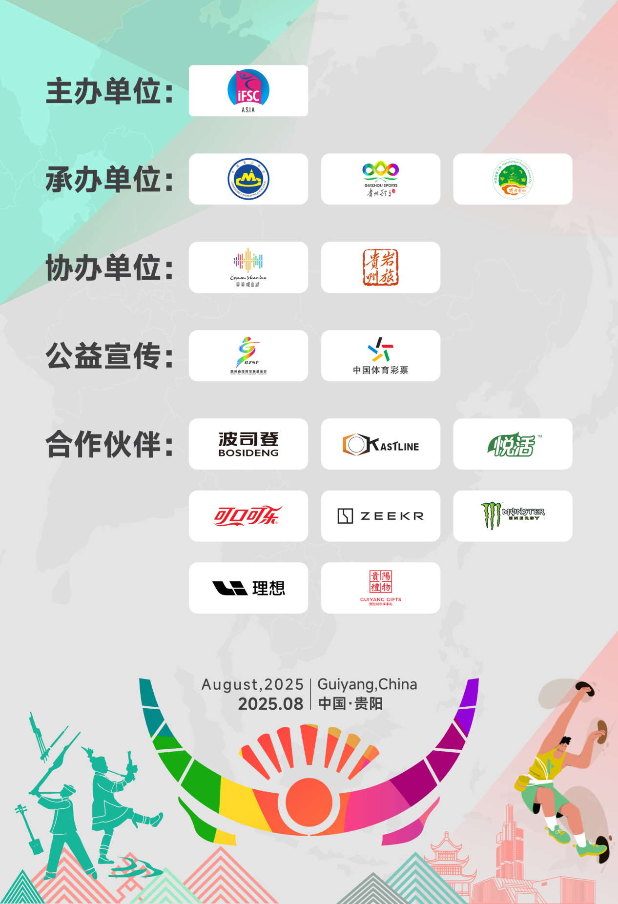8月20日至24日,爽爽贵阳的清凉气候、优质赛场和热情市民,正等待着来自亚洲各地的朋友,让我们相约爽爽贵阳,共同见证亚洲青年攀岩新星的高光时刻。