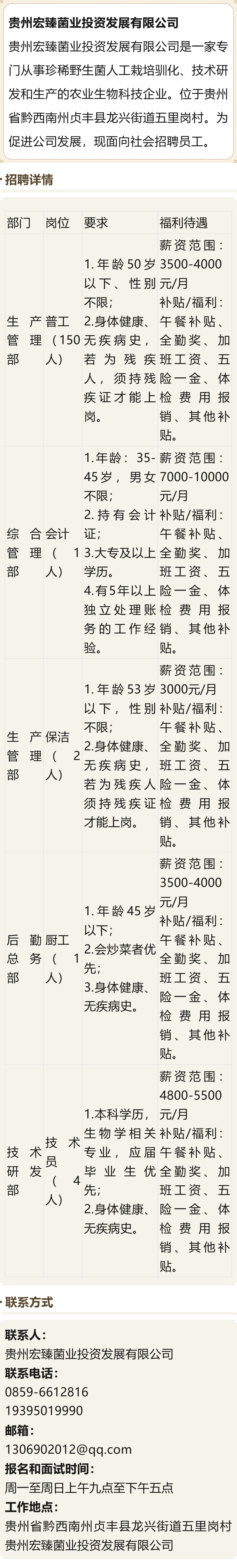 贵州招聘普工等岗位158人!月薪可达10000元!五险一金!午餐补贴!