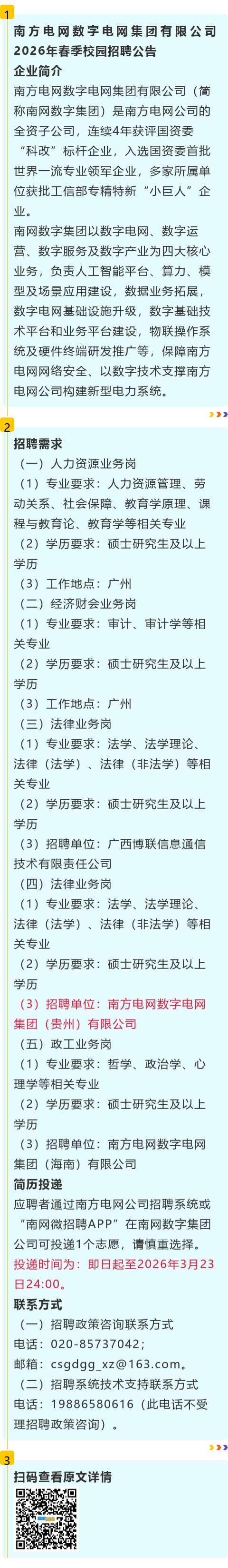 【国企】南方电网数字电网集团有限公司招聘!贵州有岗!