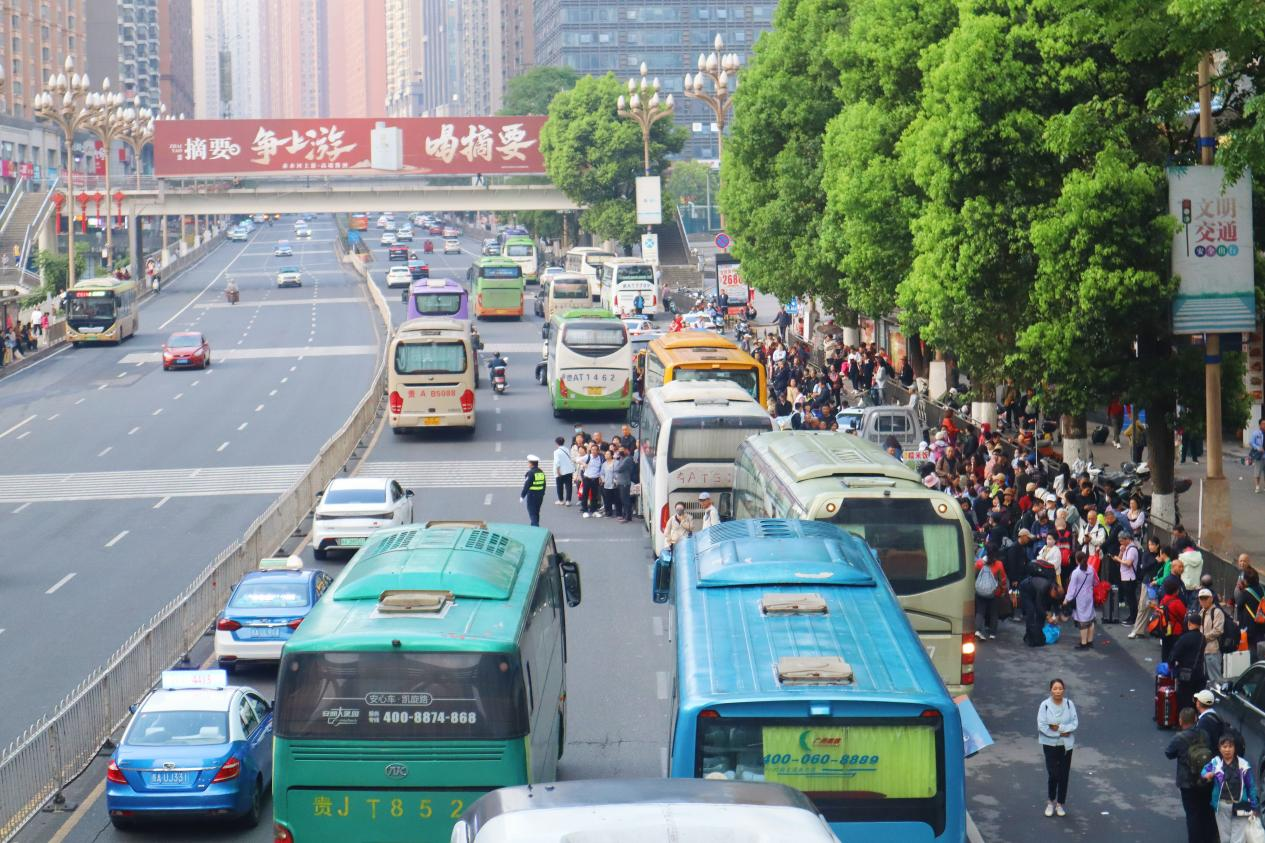 随着夏季的到来,贵州旅游市场愈来愈“沸腾”。每天清晨,在贵阳市南明区花果园延安南路,几十辆旅游大巴满载游客从花果园出发前往全省各大景区。